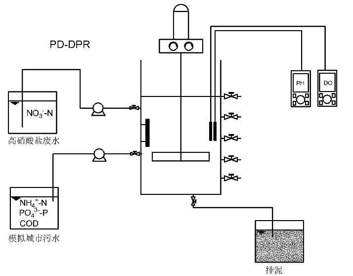 目前,有关PD工艺与DPR工艺耦合用于同时处理城市污水和含硝酸盐废水, 并实现稳定亚硝积累和高效磷去除的研究还鲜见报道。在该PD-DPR耦合工艺中,外源和内源短程反硝化及反硝化除磷过程在NO3--N去除、NO2--N积累和PO43--P去除中的贡献,以及工艺的优化运行特性还有待研究。并且,该耦合工艺与 ANAMMOX组合用于处理城市污水和含硝酸盐废水的可行性也需进一步探索。本研究采用厌氧-缺氧-微曝气运行的序批式活性污泥反应器(SBR),以模拟城市污水和高硝酸盐废水为处理对象,通过联合调控进水C/N比、厌氧排水比和缺氧时间,考察了PD-DPR耦合系统的启动和优化运行特性,并探索了PD-DPR过程NO2--N积累和PO43--P去除机制,以期为PD-DPR耦合ANAMMOX 实现城市污水和高硝酸盐废水的深度脱氮除磷提供实验数据和理论支持。