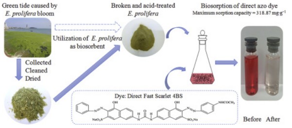 硕士研究生孙文静以浒苔制备生物吸附剂,用以吸附废水中的染料直接耐酸大红4BS,相关成果以“Biosorption of Direct Fast Scarlet 4BS from aqueous solution using the green-tide-causing marine algae Enteromorpha prolifera”为题发表在国际著名期刊Spectrochimica Acta Part A上。我校为第一作者单位,研究生孙文静为第一作者,我校孙文寿教授为通讯联系人。
