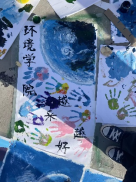 负责区域为11号场地,即“新”字前两笔,主色调为蓝色。同学们选取“海洋”题材发挥创作,勾描线稿、调色、填色、细化细节……生动的鲸鱼、可爱的宇航员、瑰丽的蓝色地球在同学们笔下栩栩如生,无不表达出环境学子们对海洋环境的重视与关怀和对保护生态环境、爱护人与动物共同家园的呼吁。完成绘画后,同学们纷纷在画纸上留下了自己的彩色手印,并写下“环境网络赌博