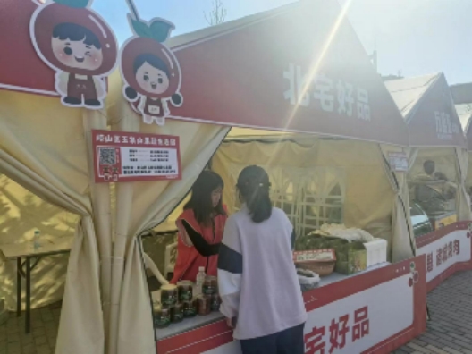 在五天的时间里,志愿者们充分发挥志愿服务精神,在展位上进行农产品销售,并做好展位秩序的维护和管理。