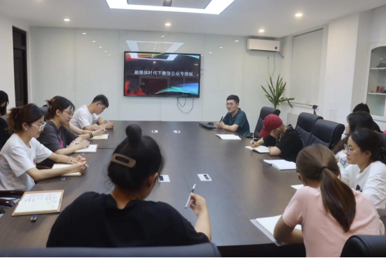 公众号的发展历程,用生动鲜活的案例向全体学生干部讲述了融媒体时代下微信公众号的发展与创新。首先,他向全体成员介绍了公众号的演变发展以及在当今时代的重要性。随后,介绍了高校公众号推文的分类以及制作排版时的注意事项。他建议在今后制作推送时,要制作一个标签,作用是用来吸引大家的眼球和便于查找;作者的命名可以紧跟时代潮流,不断创新;内容的排版应做到简洁、易懂、明了,鼓励同学们在阅读大量公众号的基础上,掌握基本的模式,不断揣摩,优化公众号制作与运营。