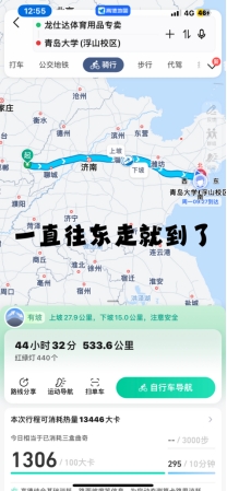 经历四天三夜500多公里的骑行,他用车轮从西向东丈量了整个齐鲁大地。当他看到青岛大学校门的那一刻,他说这一路走来的所有艰难险阻都值了。回想这次骑行,他非常感谢家人和朋友的关心,更想感谢一路上所有帮助过自己的人,虽是过路之缘,却更加弥足珍贵。
