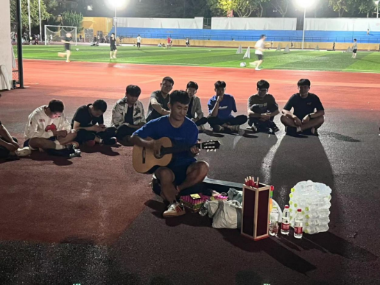 首先呈现给大家的是才艺展示环节。2022级研究生杨国先率先登台,带来歌曲《这世间美好与你环环相扣》;随后,2023级新生李京浩和袁佳鹏分别献上了歌曲《陷阱》和《Don't be my heart》;最后,由22级王一鸣同学和23级袁佳鹏同学分别演奏的吉他弹唱将整个晚会推向了高潮。