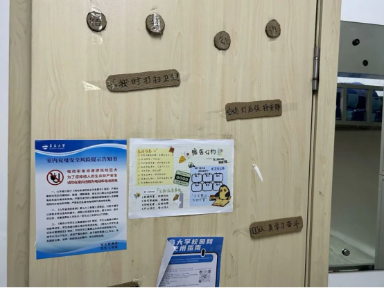 除此之外,大家共同制定宿舍规范条例,共同遵守,共同维护,让宿舍成为大家共同生活的“家”