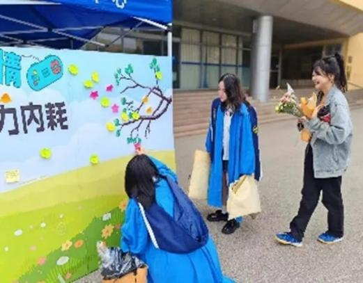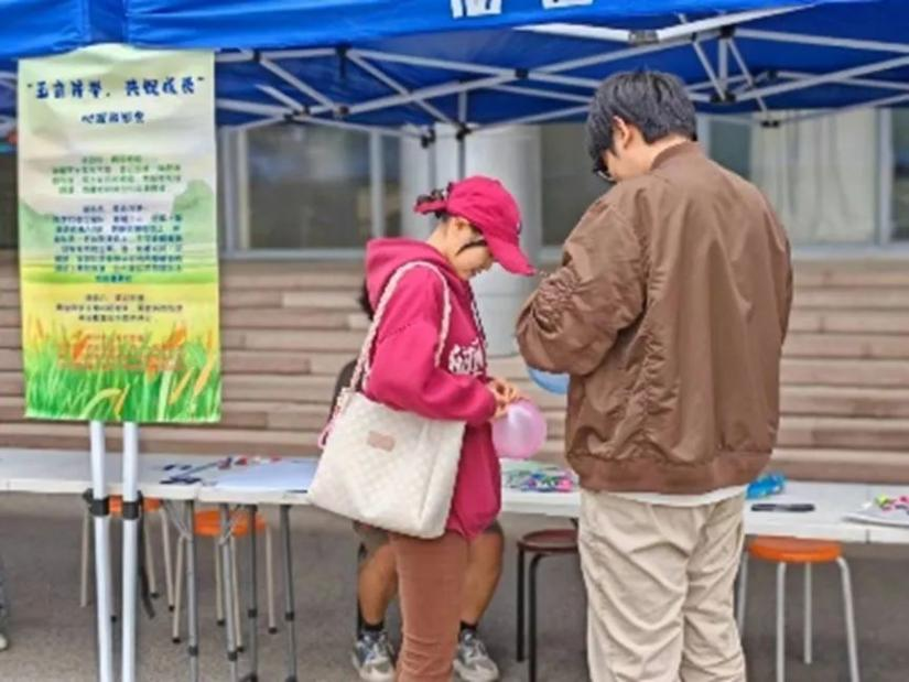 在青岛大学浮山校区博文楼前广场和金家岭校区剑湖旁同步举行“五育并举,共促成长”心理游园会。14个主题活动区,各种精美的奖品,吸引着两校区百余名同学驻足参与活动。