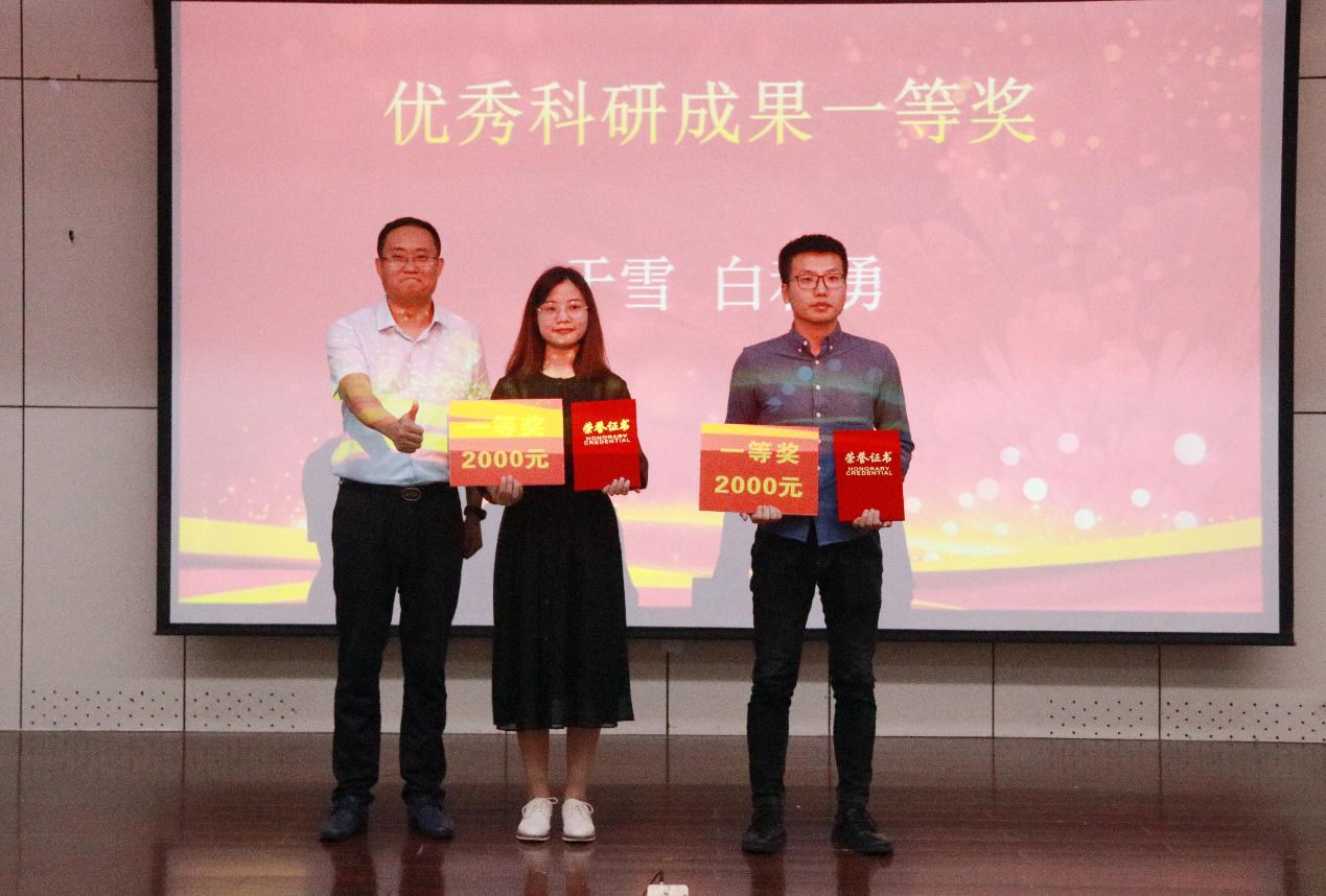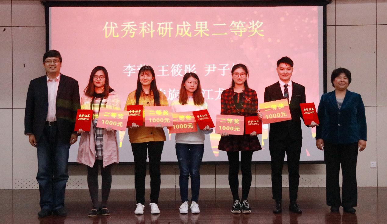 首届研究生学术交流年会上评选出的2名一等奖、5名二等奖和8名三等奖以及5名优秀奖的同学予以表彰,为他们颁发“鼎商杯”学术之星校友奖学金奖证书和奖学金。