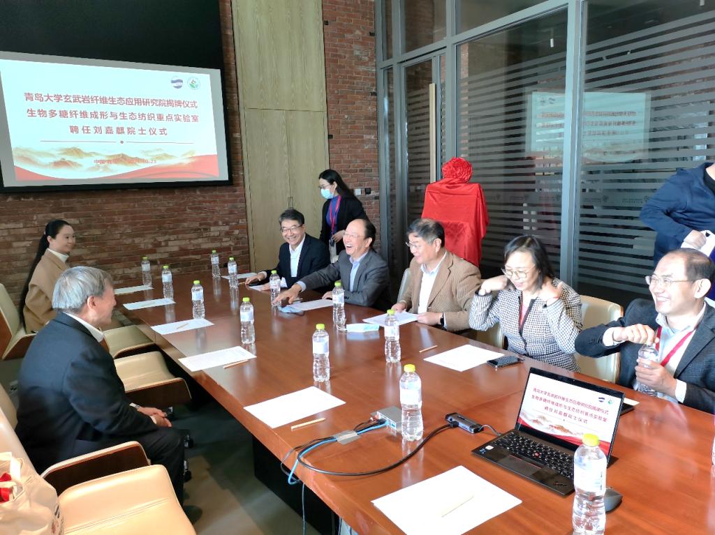 揭牌仪式后,召开玄武岩纤维生态应用研究院建设和发展座谈会。夏东伟介绍了学校的办学历史和近年来在师资队伍建设、科技创新、服务城市发展等方面取得的成绩,着重介绍了我校学科集群建设情况。他指出,青岛大学作为以青岛城市命名的综合大学,具有优越的地理位置和良好的发展环境,学校坚持“打青岛牌、唱国际歌”的特色发展理念,依托青岛,放眼世界,借助青岛城市特色优势,提升学校国际影响,在国家战略发展和“一带一路”等国际交流与合作中发挥着重要作用。他指出,玄武岩纤维材料及其广泛用途,与青岛大学现有的材料、纺织、环境、化工等多个学科都有较高的契合度,从人才发展和研究方向上也有着深厚的融合基础,应用研究院的成立是缘分更是机遇,有助于青岛大学拓展学科领域、提升学术水平,对学校未来建设发展具有重要的推动作用。