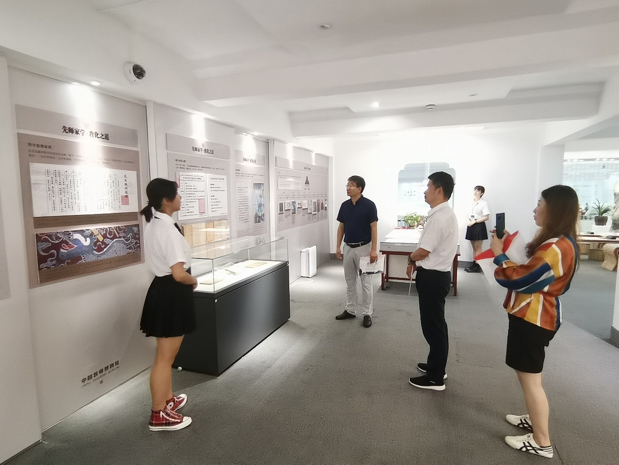 会后,又来到中国教师博物馆参观学习。中国教师博物馆坐落曲阜师范大学,是全国首座也是唯一教师文化主题的综合性博物馆,2018年,一期展馆建成,并举行了首次展览。中国教师博物馆紧扣“教师”这一对象,围绕“教育文物”“教师风范”两大主线,突出“民族文化记忆、教育历史遗产、教师精神家园”三大定位。此次调研学习,更加深刻地了解中国悠久的传统文化,也对“教师”一词的由来及内涵、教具与学校的演变与发展有了深刻的认识,增强了对教师专业的认同感和责任感,提升工作能力,促进了辅导员职业化、专业化建设。