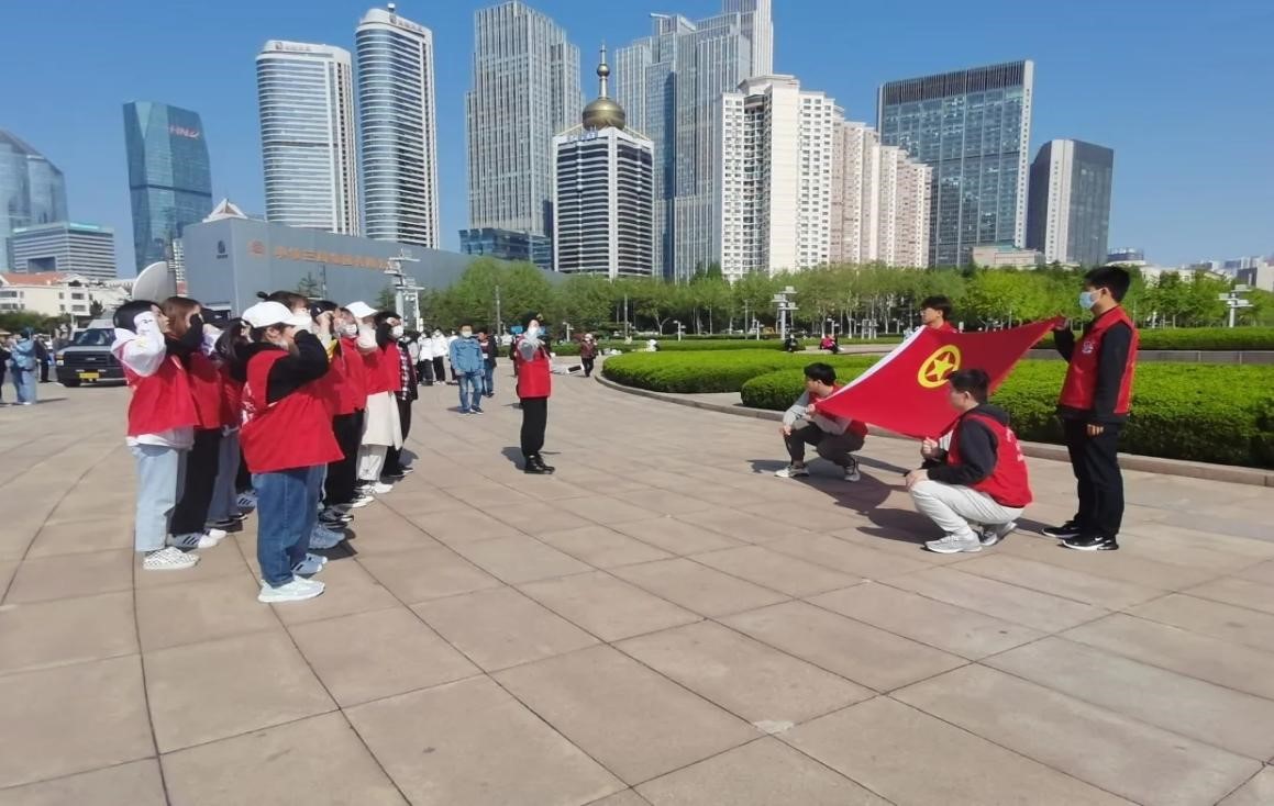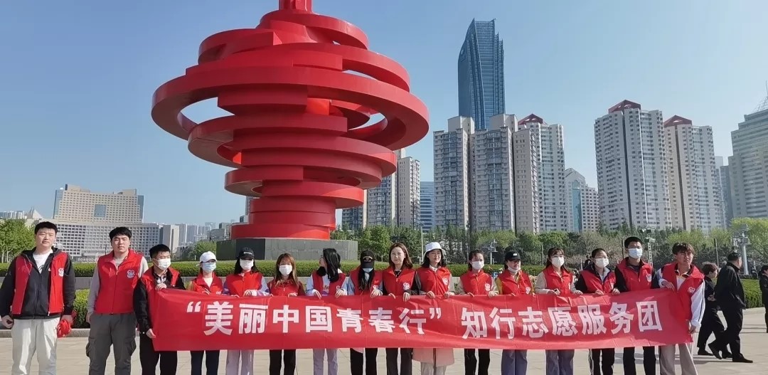 知行志愿服务团成员齐聚五四广场开展“美丽中国青春行”五四主题团日活动。