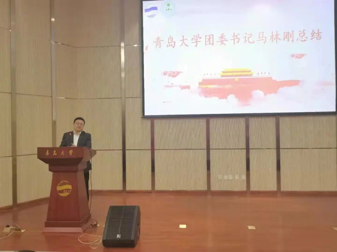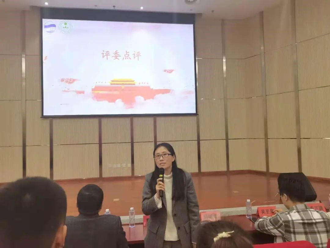 团委负责人老师尹昊宣读了此次成果展示的具体流程和评选细则。随后,入围此次决赛的五个篇章共八组作品依次上台进行展示,各组选手准备充分,展示精彩纷呈,现场气氛热烈。董永红和林国红两位评委分别对各组作品进行精到点评。经过各位评委细致严谨的评分计分,由学工办主任刘妍妍宣读获奖名单和表彰决定。此次活动决出一等奖1名,二等奖3名,三等奖4名,由三位特邀嘉宾分别为一二三等奖获奖同学颁奖并合影留念。最后,马林刚书记作总结点评,他对此次活动的目的及意义表示了支持与肯定,同时希望同学们,以建党百年为契机,不负韶华,创造精彩人生。