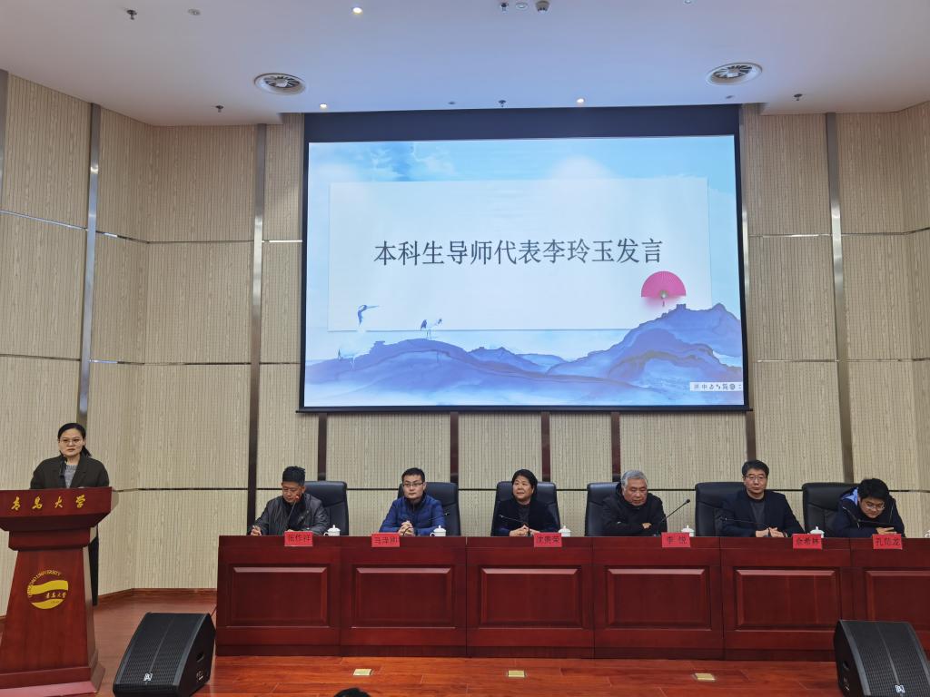 为七位2020级本科生导师代表颁发聘书,李玲玉老师和代美英同学则分别代表导师和本科生做了发言。