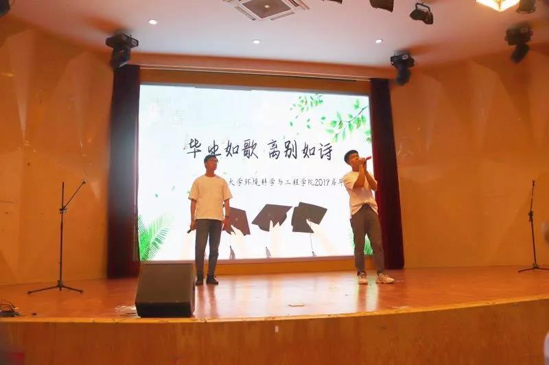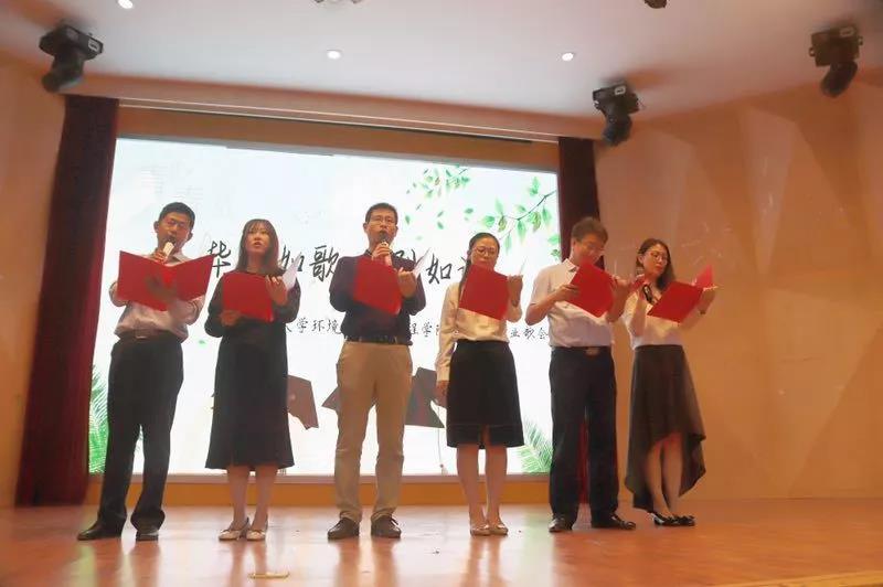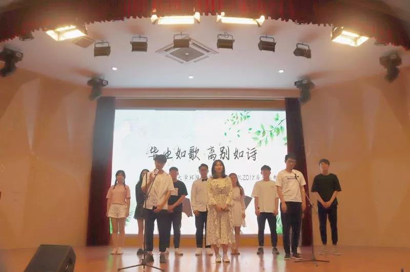 六位老师登台集体朗诵了诗歌《守巢人》,表达了浓浓的师生情谊。2016级的同学们为全场献上激情澎湃的舞蹈《whistle-remix》,表达了对师哥师姐的美好祝愿。毕业生同学们则带来了《陪我长大》《突然想爱你》《一个像夏天,一个像秋天》《那些年》《青春大概》《旅行的意义》以及合唱《怀念青春》《放心去飞》等精彩歌曲。最后,老师们纷纷上台为即将远行的毕业生们送上最后的祝福。