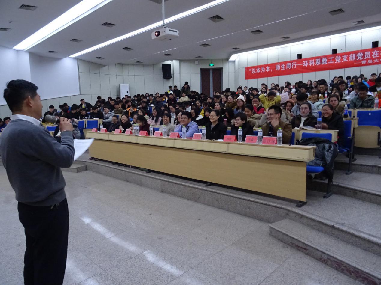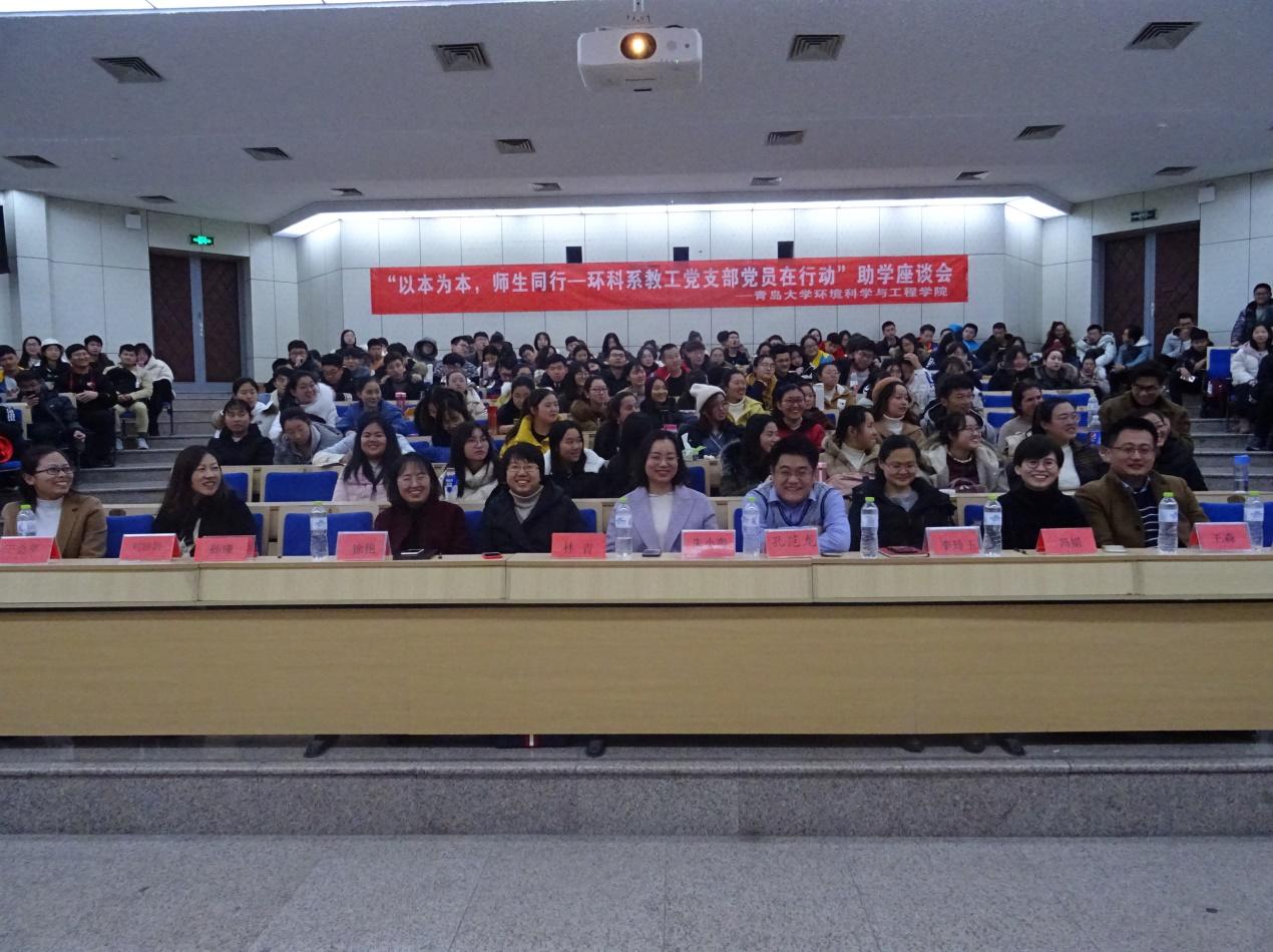 学生党支部的支持和配合下,12月14日下午在学校图书馆报告厅举办了“以本为本,师生同行——环科系教工党支部党员在行动”助学座谈会。全院大一至大三三个年级300多名学生参加。