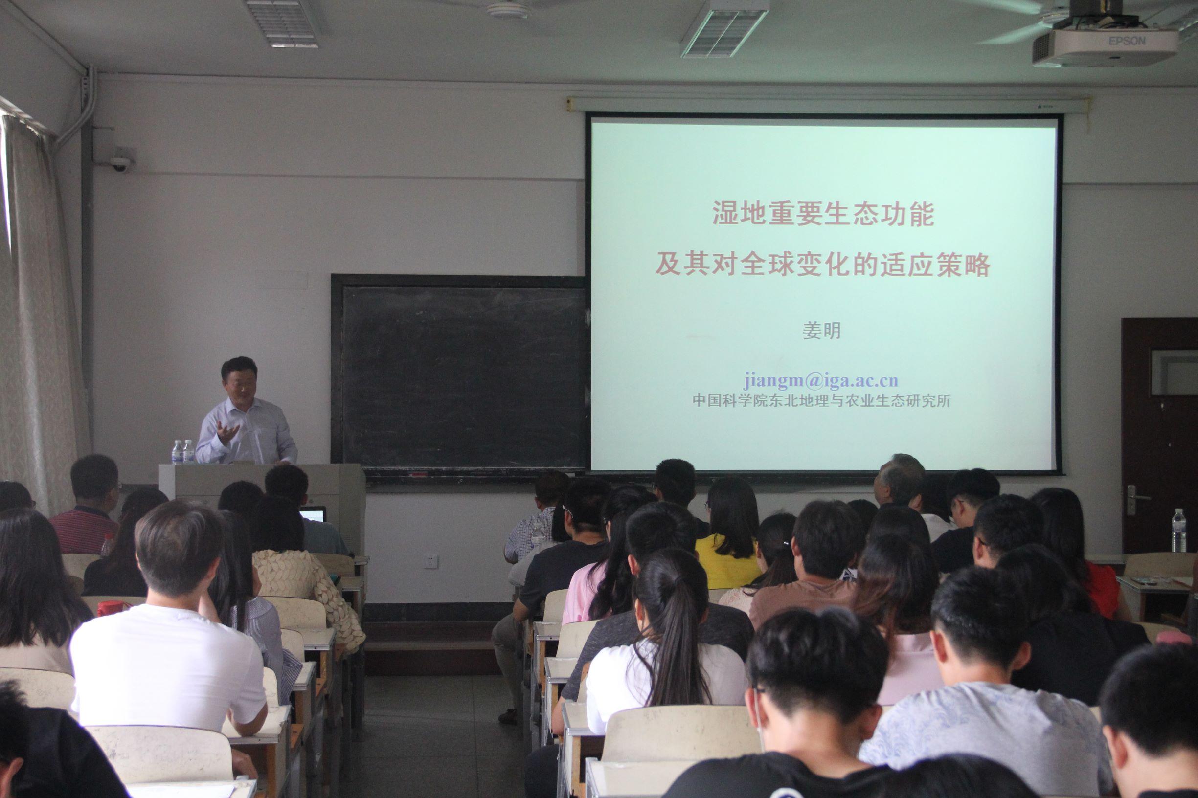 邀请,中科院东北地理与农业生态研究所姜明研究员在浮山校区博知楼303教室作了题为“湿地重要生态功能及其对全球变化的适应策略”的高端学术报告。报告会由李悦院长主持,9位优秀骨干教师、100多名本科生和研究生到会。