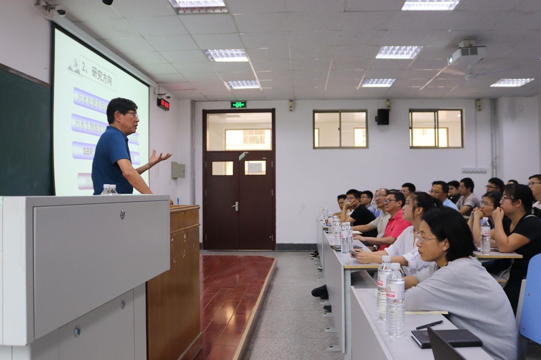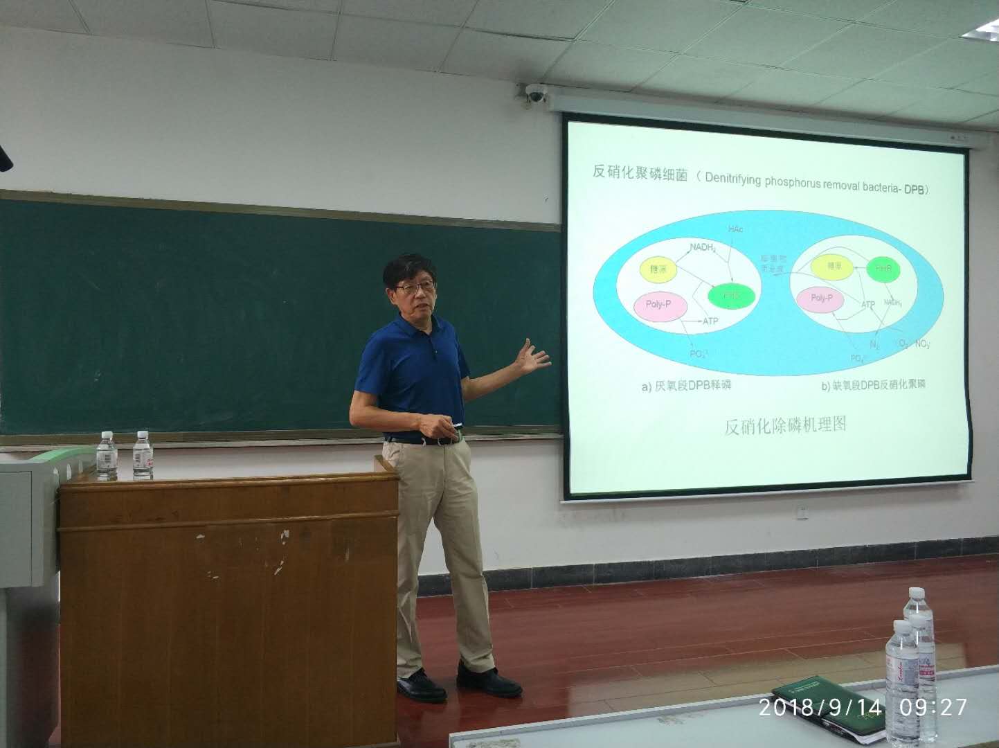 邀请,中国工程院院士、北京工业大学环境学科首席教授彭永臻院士来到我校做题为《AOA异养与自养耦合污泥减量强化城市污水深度脱氮脱磷》的高端学术报告。报告会由李悦院长主持,来自全校约200名师生到会。
