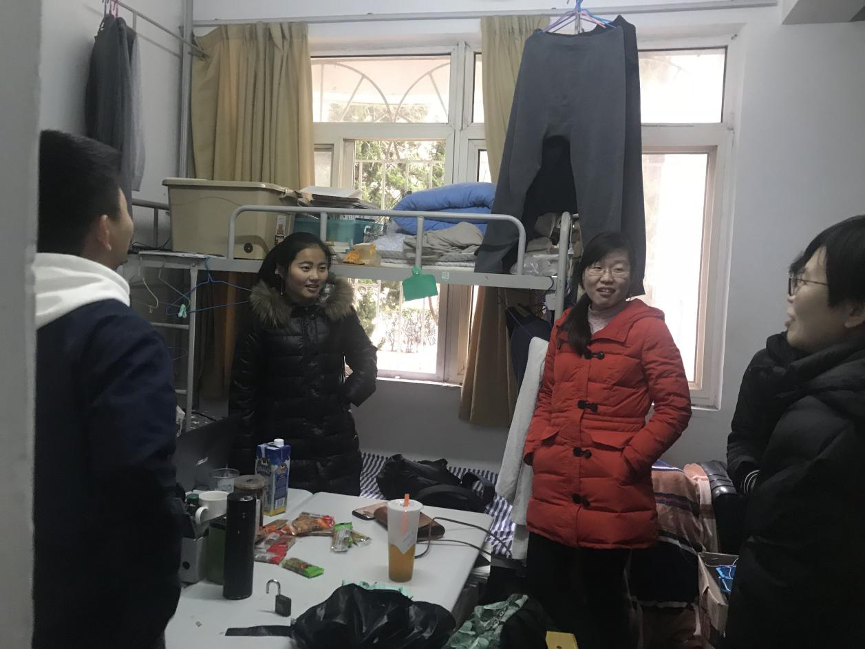 辅导员姜志翔老师和副书记张作祥老师刚好抽查宿舍,姜老师对我们的宿舍整理工作提出了很宝贵的意见:“宿舍的柜子并不是说是私人物品,而是大家公用的,没必要每个人的东西占一格,可以把杯子、牙刷单独放一格,不用的书籍放一格......进行同类归纳,这样也会看起来整齐,同时,拿东西也会方便不少......”