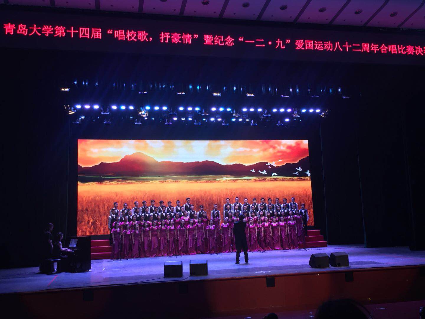12月7日晚,青岛大学第十四届“唱校歌 抒豪情”暨纪念“一二·九”爱国运动82周年合唱比赛决赛在青大剧院举行。