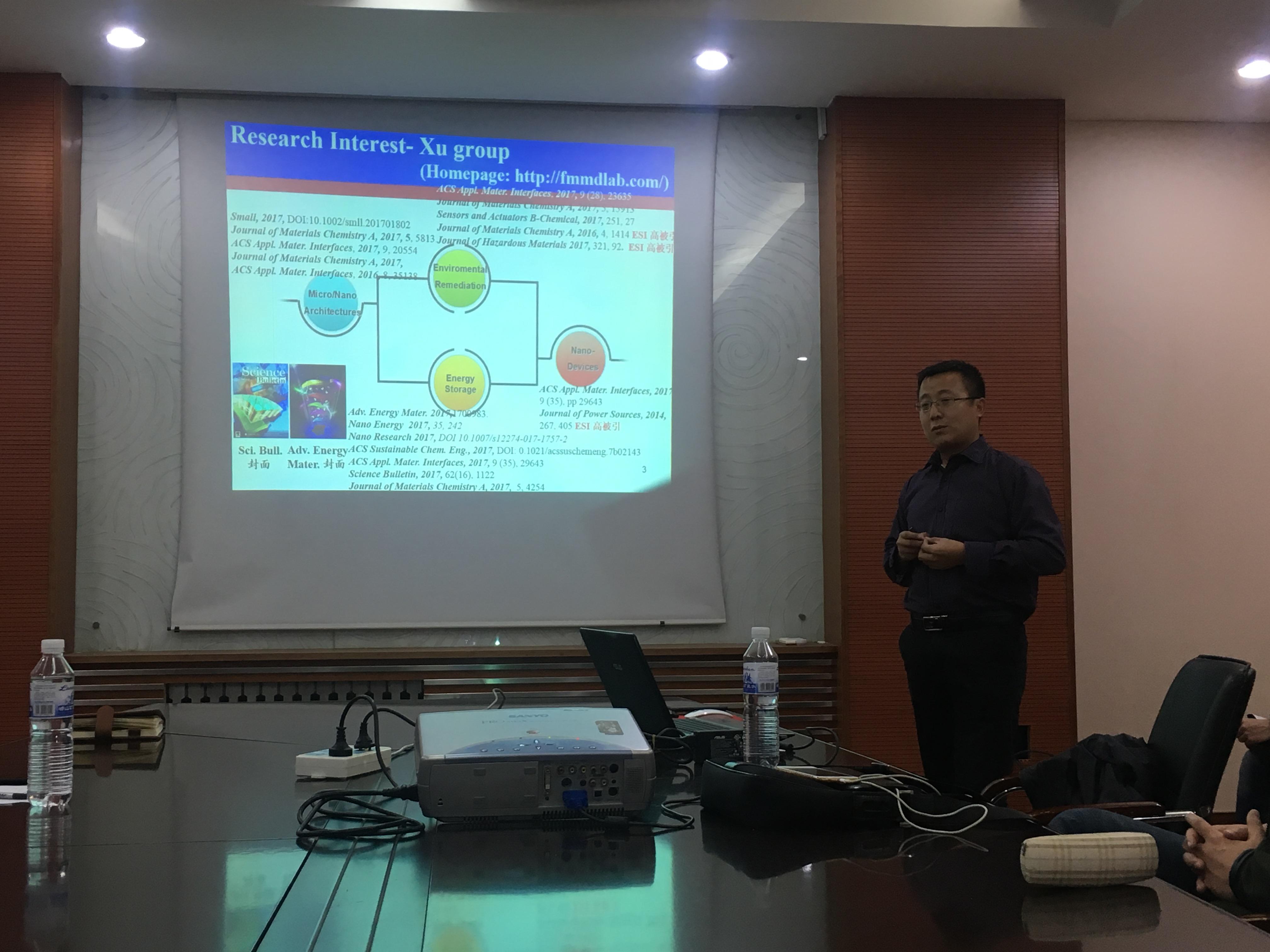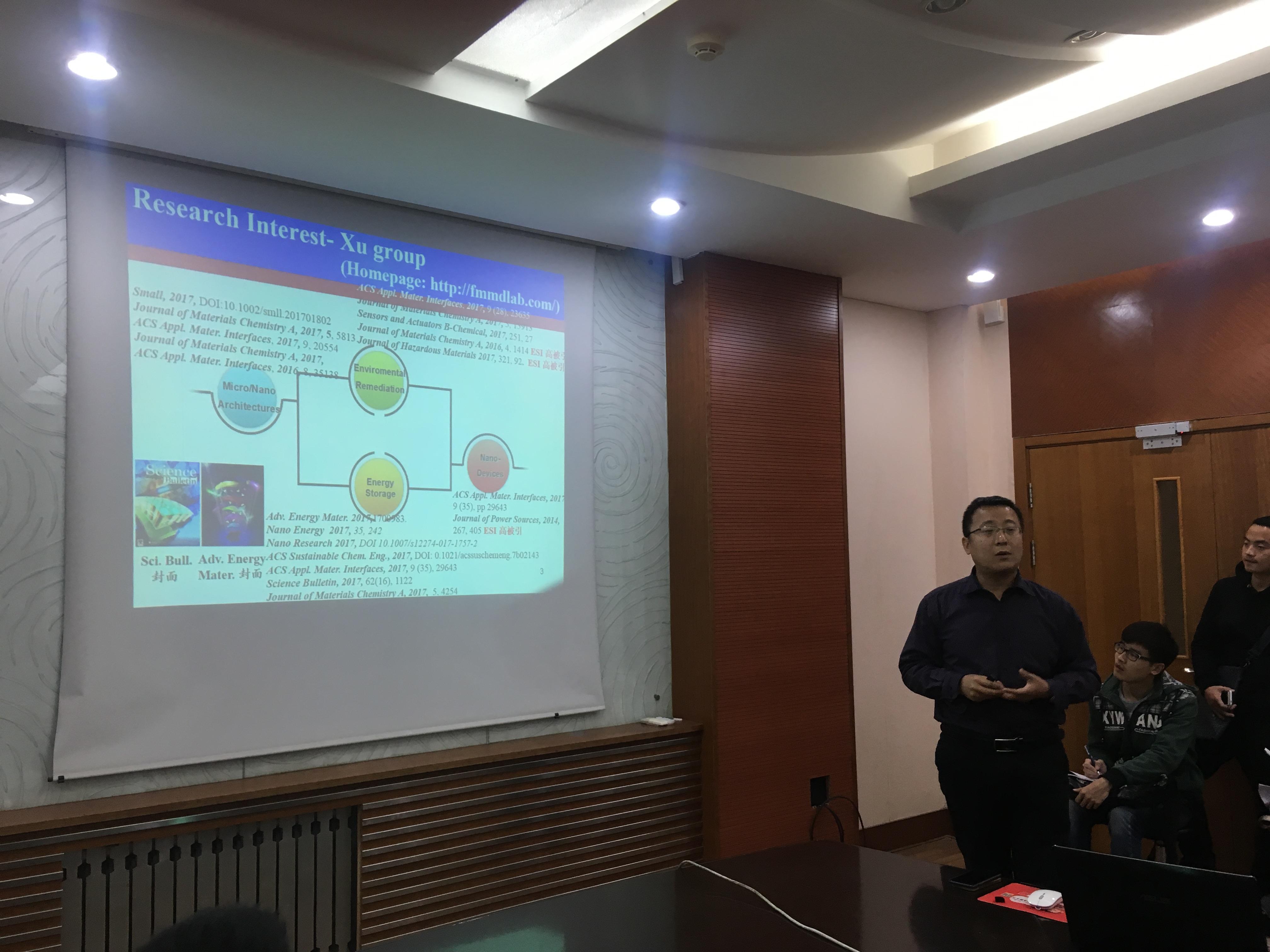 徐教授的报告主要围绕如何通过纳米尺度的结构单元可控组装得到各种微纳结构先进材料,他着重介绍了特殊形貌纳米材料及新型低温纳米材料的可控合成、新型光功能材料和太阳能转换半导体材料的构筑、微纳复合材料的可控制备及其在锂离子电池、超级电容器、电化学传感器件的组装等领域的功能构筑,特别指出特殊孔结构的纳米单金属和双金属电极材料的研究在超级电容器和锂离子电池应用领域取得了重大突破,该研究成果有望在能源等国家发展重大需求领域发挥关键作用。