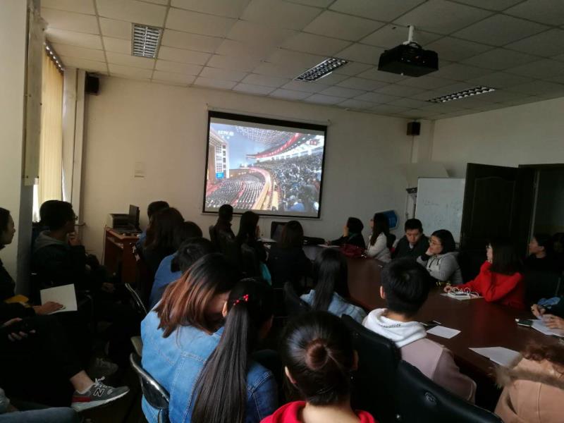 报告厅集中收看党的十六大开幕会直播。大家怀着激动的心情,完整收看了大会盛况,聆听了习近平同志代表代表党的十八届中央委员所作的报告,并在会后进行了简短讨论。