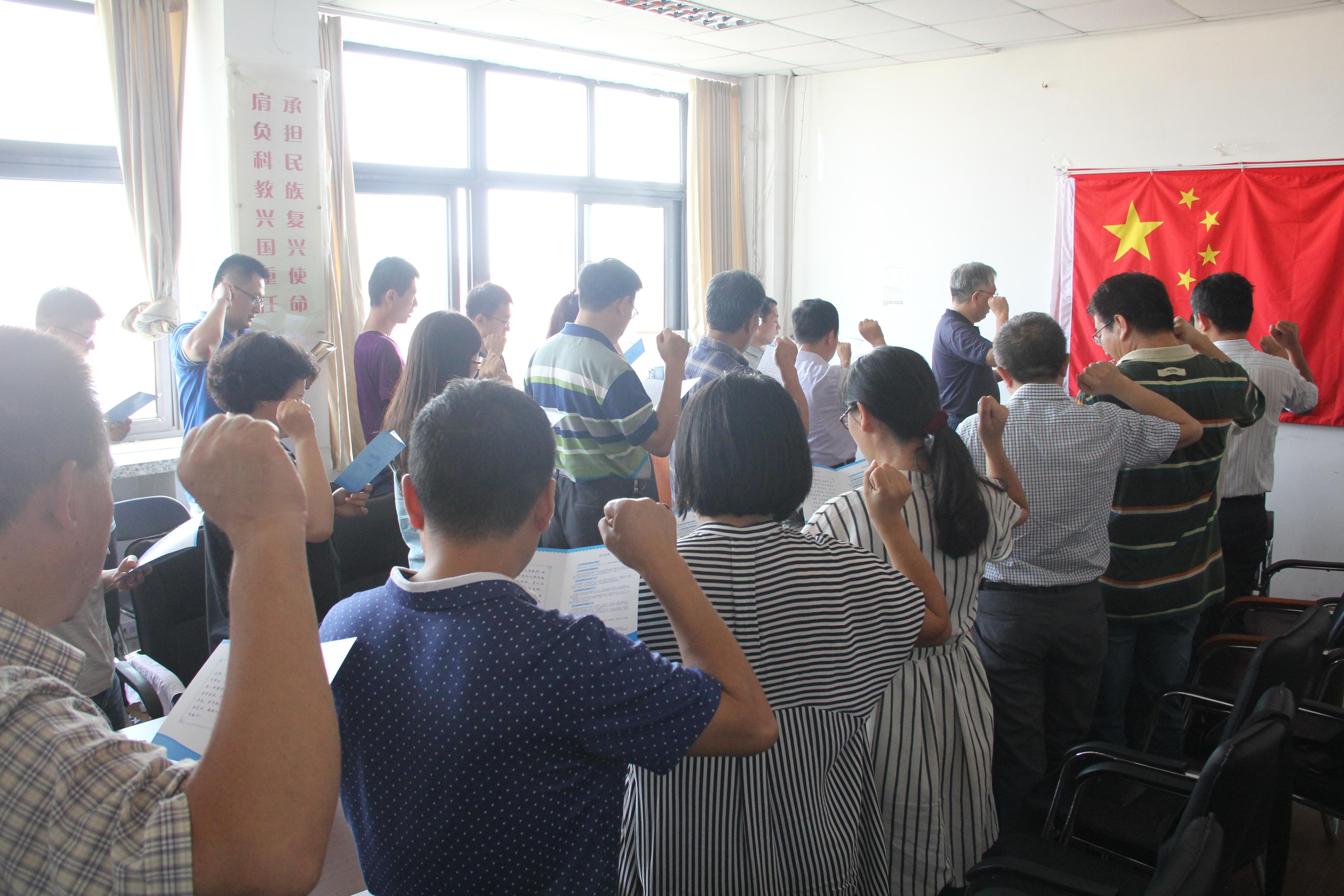 在诚思楼406报告厅召开全体教职工大会庆祝第23个教师节的到来。院长李悦带领全体老师举起右手、面对国旗,一起宣读了青岛大学教师誓词,接下来还总结了2016年半年多在教学、科研、学科建设、人才引进等方面的工作。今年新入职的6名博士研究生老师则各自介绍了求学经历、交流了心得体会。恰逢60周岁的隋玉柱教授在接受了由曾经教过的学生代表、博士生李玲玉老师敬献的鲜花和李悦院长赠送的退休纪念品之后,交流了自己的真情实感。网络赌博