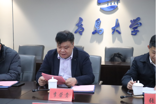 李荣贵首先对李群一行表示热烈的欢迎。他介绍了学校近年来的发展概况,重点对学校立足青岛、服务国家战略和地方发展方面进行了介绍。他表示,邹平市积极推行科技创新驱动发展战略,产业特色鲜明,呈现出高质量发展态势。在刚刚过去的2月份,双方已经举行了一次项目对接交流会,希望通过本次针对重点合作项目的推进会,提高项目落地速度,加大科技成果转化力度,尽快为区域经济发展蓄势赋能。