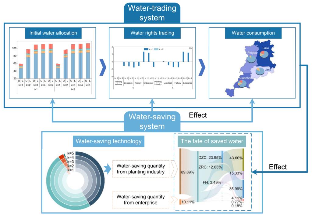 2021级研究生陈明帅在水资源系统调控领域取得重要进展,相关成果以“Quantifying the mutual effects of water trading and systematic water saving in a water-scarce watershed of China”为题发表在环境领域顶级期刊Water Research(自然指数期刊,SCI一区Top,IF = 12.8)。青岛大学为第一单位,陈明帅硕士为第一作者,张俊龙副教授为通讯作者。该研究得到了国家自然科学基金、山东省高等学校青年创新团队发展计划的资助。