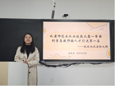 3月举办的分享会特邀2021级本科生李晓雪主讲。作为第十二届山东省师范类高校学生从业技能大赛一等奖得主,李晓雪凭借卓越表现成功通过青岛市人才引进计划,签约城阳。她以"竞赛-实习-政策"为主线,复盘从备考到上岸的全流程,从依托省赛锤炼教学技能、积累学科知识,到教育实习中实现"理论-实践"闭环;同时结合青岛、济南两地人才引进政策差异,提醒学弟学妹关注权威信息渠道,区分考核形式,把握好各类招聘的时间。