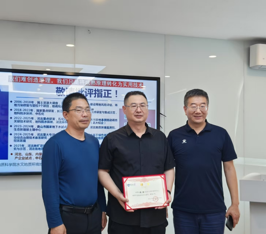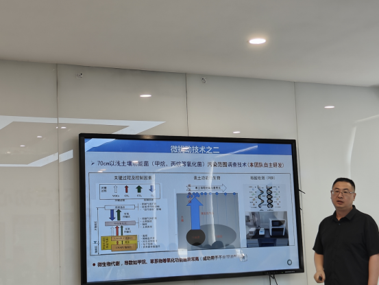 在学术交流环节,张敏校友给师生作了题为《土壤地下水污染安全高效低成本微扰动调查与“自然衰减+”监控》的学术报告,他聚焦微扰动调查与"自然衰减+"监控技术的研发应用,系统介绍了团队近20年主要研究成果。并以京津冀、长江经济带等国家战略区典型案例,展示了成果的应用情况,同时结合国家“双碳”战略与环保产业升级需求对成果的应用前景进行了展望。