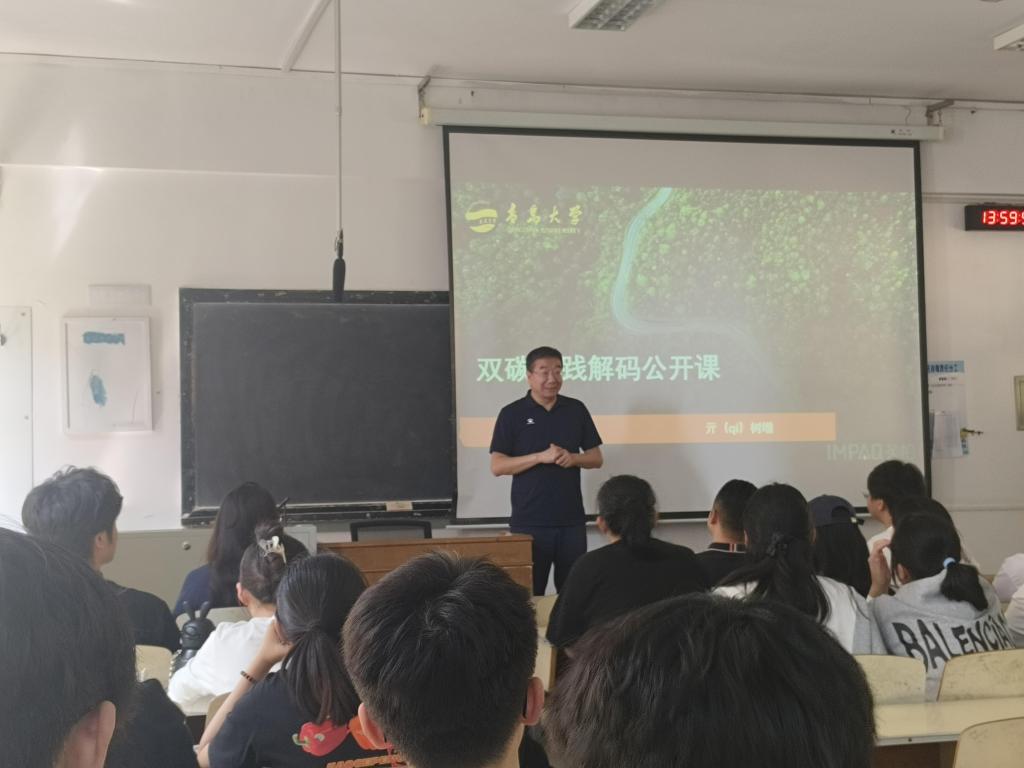 院长佘希林教授主持。亓树增校友是青岛大学2008届毕业生,同时担任中华环保联合会绿色贸易促进委员会副秘书长,在“双碳”领域经验丰富、贡献颇丰。他满怀热忱回到母校,期望以自身经验为学弟学妹的职业发展指明方向。