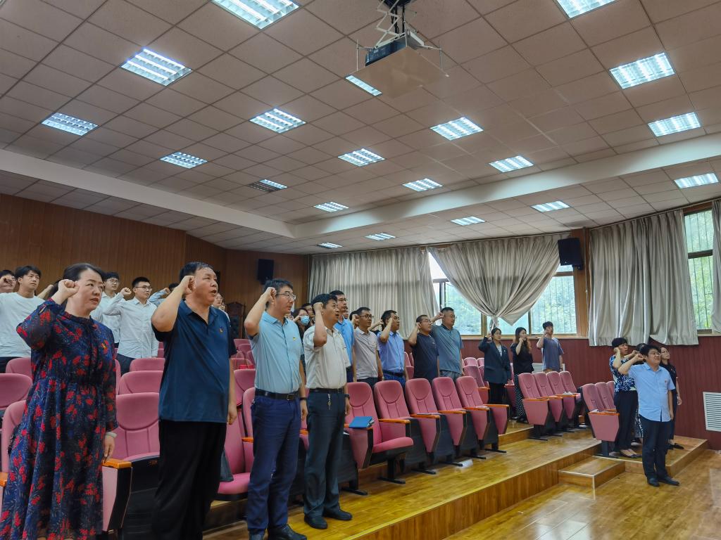 会上,副院长孔范龙带领大家重温入党誓词。尹昊作为优秀共产党员代表,结合自身学习与工作实际作交流发言。