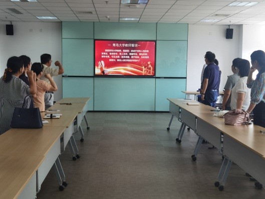 发展做出更大贡献。最后,全体教师起立,右手举拳,在赵宗山副院长的领读下庄严宣誓《青岛大学教师誓词》。