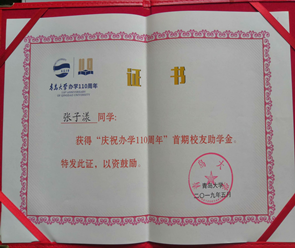 即使参加各类活动,学习也毫不松懈,张子漾同学认真的学习专业知识,并曾获得学校的多项奖学金。