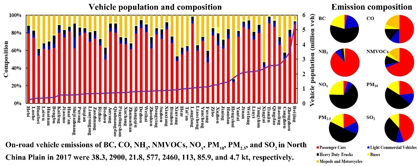 自21世纪以来,我国道路车辆数量呈指数增长,机动车尾气排放成为我国大气污染的重要来源。华北平原是我国第二大平原,其覆盖面积约占全国总面积的20%,包含了北京、天津和石家庄等特大城市及许多人口密集的城市群,同时华北平原也是我国污染最严重的地区之一。本研究以华北平原53个城市为研究对象,建立了机动车大气污染物高分辨率排放清单,包括152个排放子源和8种污染物。利用COPERT v5模型对逐月排放因子进行了模拟,并根据交通路网信息建立了4km×4km的网格化空间分布,系统全面地研究了华北平原机动车大气污染物排放特征,识别了各污染物的主要排放源和高排放强度区域,为华北平原大气污染的有效防治提供了理论依据。