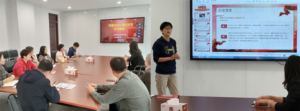 11月4日下午,环境材料系党支部采用线上线下混合形式,召开了第二次“党员讲党史”微课堂系列专题活动,环境材料系全体教师全部参与。本次微课堂是孙瑾老师带来的《抗美援朝》。