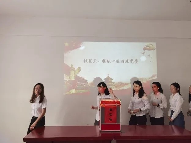 为进一步强化党员身份意识,不忘初心、牢记使命,以更加昂扬的姿态迎接建党100周年,621日上午,网上赌博平台 组织35名毕业生党员在浮山校区博观楼432开展“喜迎建党百年,书写奋斗青春”主题党日活动,内容包括:赠送一本党史学习书籍、捐献一次特殊党费、分享一次入党经历、聆听一次党课和重温一次入党誓词等环节,学生党支部书记刘妍妍老师主持。