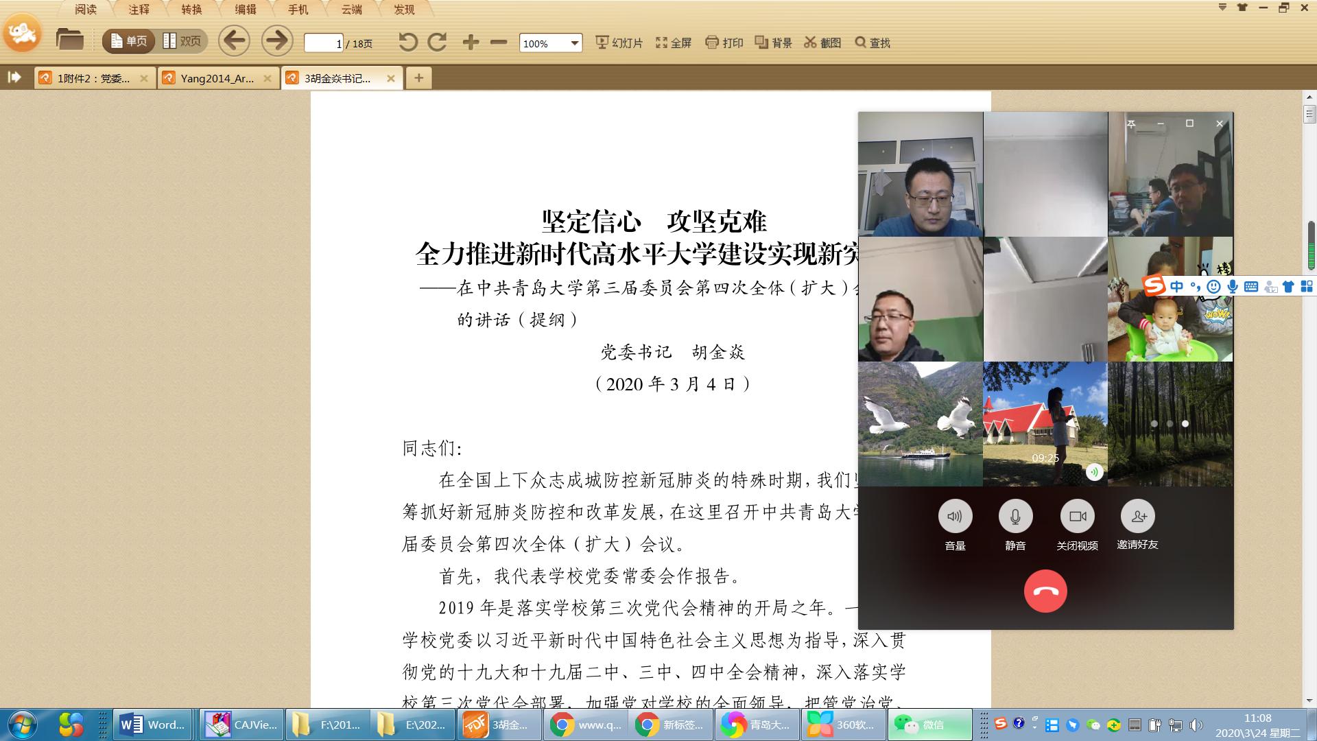 3月24日上午,为保证新冠肺炎疫情防控期间理论学习不间断,网上赌博平台 环境生态系教工党支部利用微信网络平台开展线上专题学习研讨会。会议由党支部书记王森主持,全体党员参加。